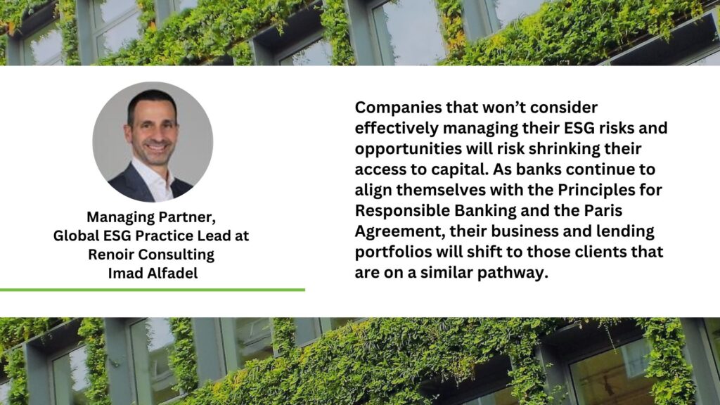 It is becoming crucial for all corporations to embed ESG in their business models and operations, according to Imad Alfadel, Managing Partner, Global ESG Practice Lead at Renoir Consulting.